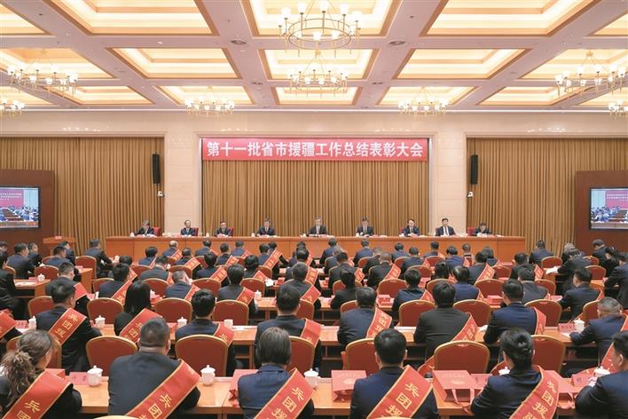 第十一批省市援疆工作总结表彰大会4月27日举行。自治区党委副书记、兵团党委书记、政委何忠友出席会议并讲话。